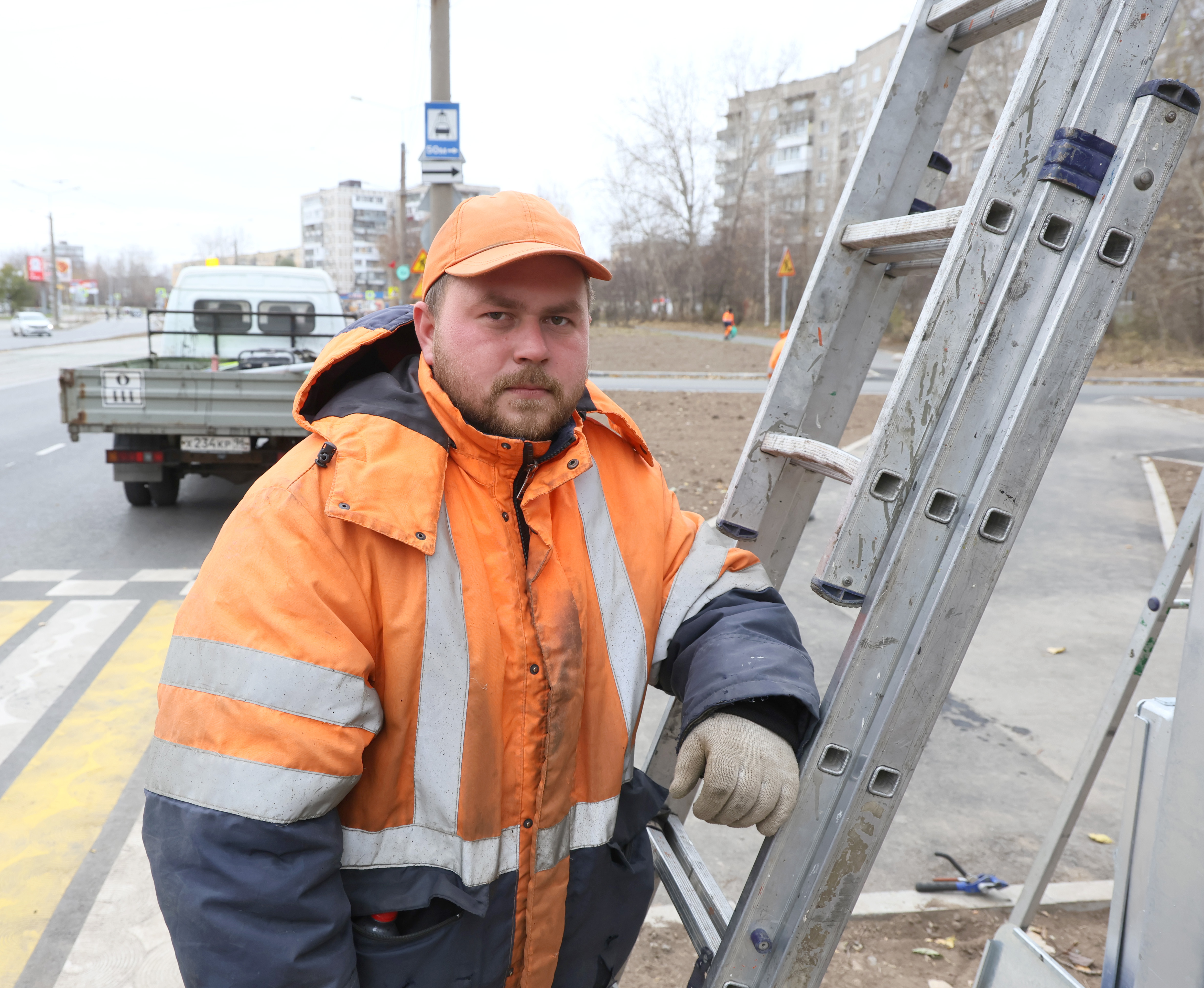 Егора Кропотова мы застали на улице Зари, где рабочие вешали дорожные знаки на новые столбы. Девять лет он трудится в ООО «УБТ-Сервис». Родился и вырос в Нижнем Тагиле.