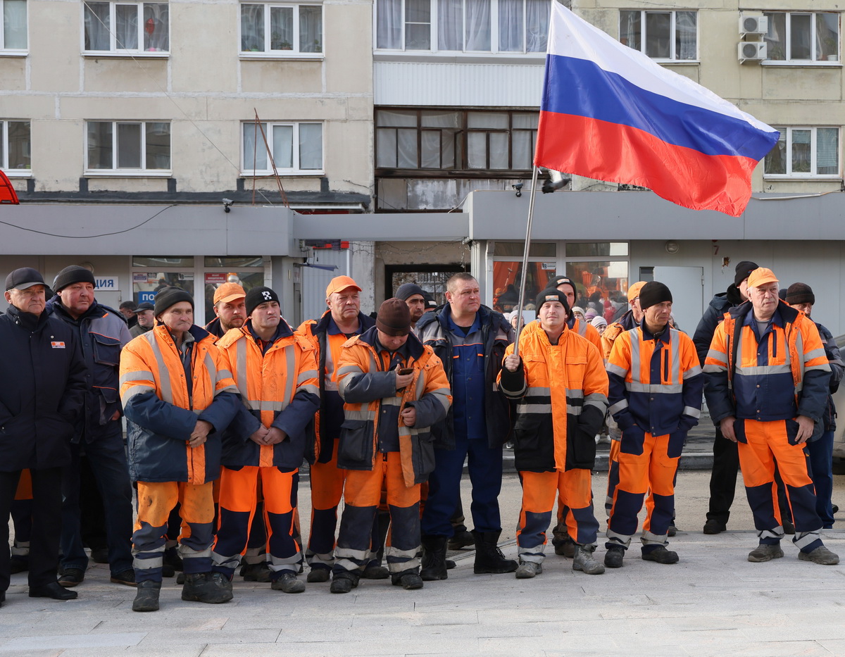 Рядом с остановочным комплексом "Кедр" собрались все те, кто приводил в порядок дорожное покрытие, бордюры, пешеходные переходы, лестницы, пандусы. А прохожие останавливались, фотографируя уличную выставку дорожной техники.