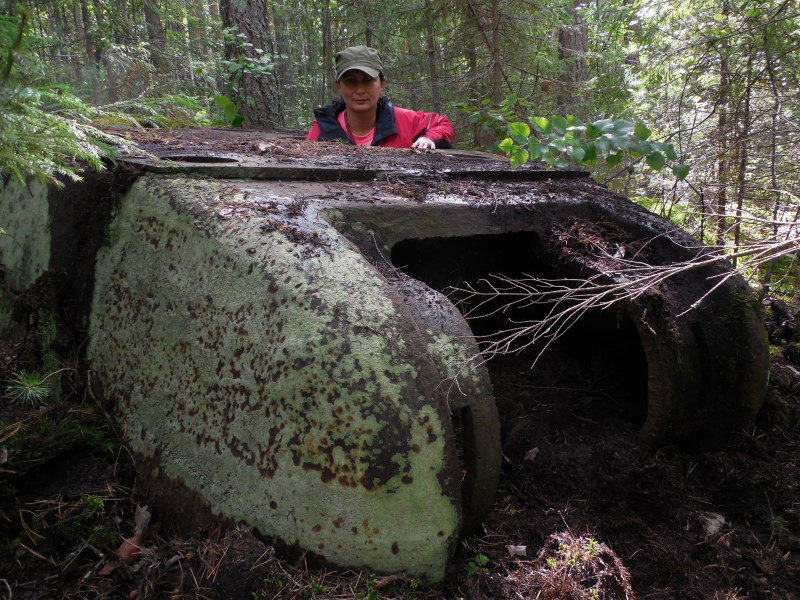 - Осмотр местности показал, что лес вокруг замещенный, относительно молодой, соснам около 60 лет. Рельеф неровный: довольно крутой склон Богородских гор. На расстоянии 500-600 метров присутствуют остатки коммуникаций ранее расположенных в этом районе частей ракетных войск. Танком, как тягачом, могли воспользоваться для установки этих коммуникаций. При резком столкновении башня могла слететь с танка, а забирать ее не стали, - предположила Ольга Сергеева.