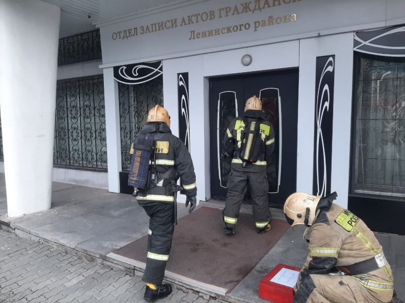 Как рассказали в 9-м пожарно-спасательном отряде, пожарно-тактические занятия прошли в отделе ЗАГС Ленинского района. По легенде, в архиве произошло возгорание.