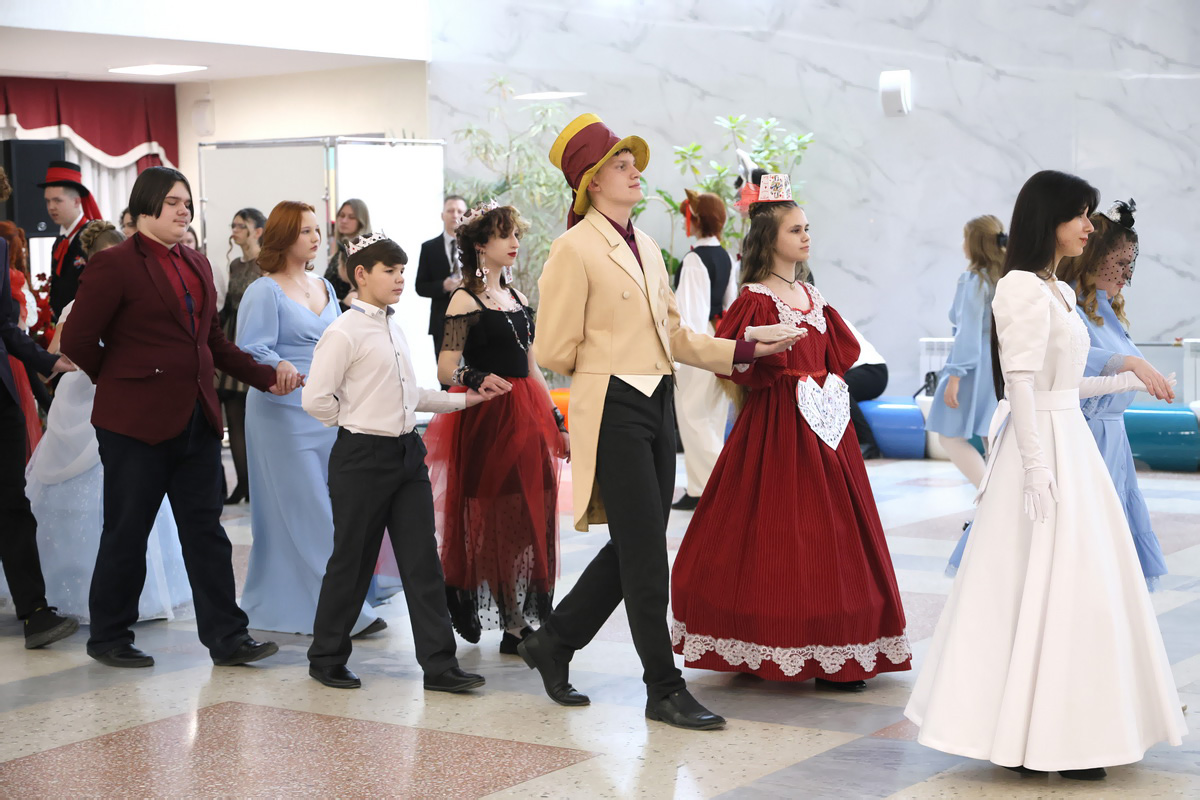 Вечер с ребятами провели Шляпник, Алиса, Красная Королева и даже Бобчинский с Добчинским. В завершении бала лучшие танцевальные пары отметили в четырех номинациях: самая элегантная, романтичная и нежная пары, а также “выбор сердца”.