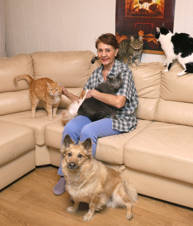 Сегодня у Натальи Васильевны пять кошек и две собаки. Дворняги Лиза и Муха отлично уживаются с котами Кузей, Левой, Тишей, Филей и Федей: разномастная и разновозрастная компания невероятно дружная.