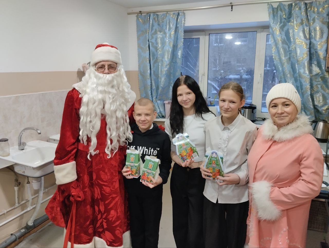 В преддверии праздников полицейские поздравили ребят с наступающим Новым Годом и вручили им подарки. Для детей была организована праздничная программа с участием Деда Мороза и Снегурочки.