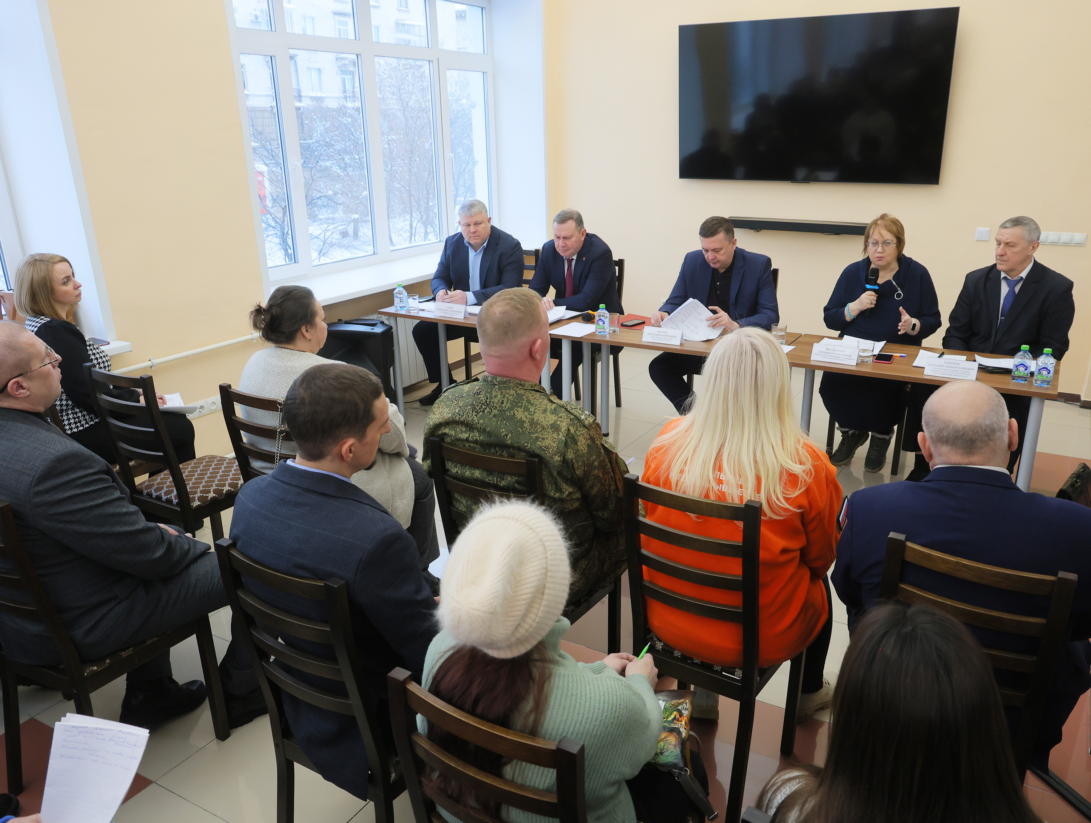 На прием приглашены семьи участников СВО, получивших особый статус. Какова его суть? В ходе военных действий, обнаружив отсутствие бойца, командир воинской части своим приказом признает его пропавшим без вести. На поиск солдата законом отводится полгода. Ответственен за это командир части, но, разумеется, родственники и друзья пропавшего человека тоже ищут своего героя. Им помогают сотрудники фонда «Защитники Отечества». А после обращения членов семьи в аппарат уполномоченного по правам человека к поиску присоединяется команда Татьяны Мерзляковой.