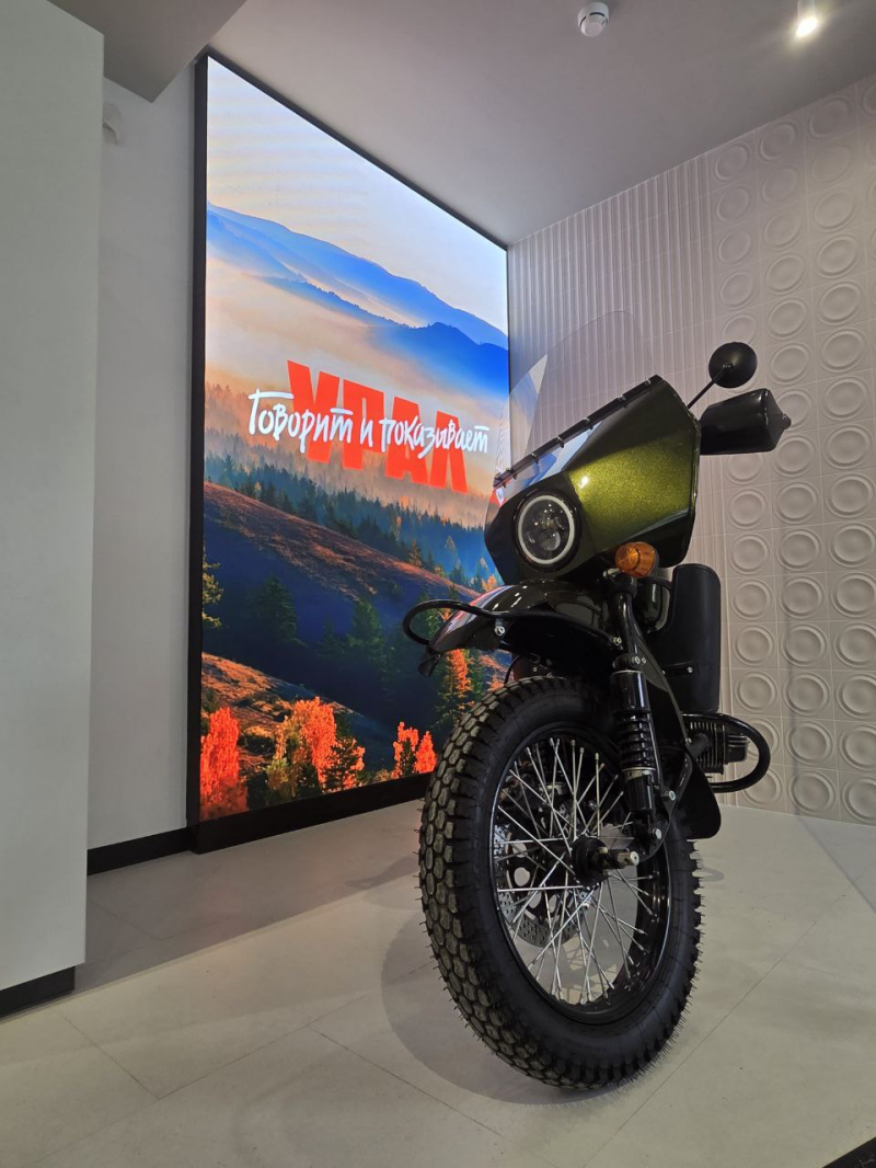 В обновленном интерьере гармонично объединились современные технологии и уральский характер бренда. В отделке использовали камень и металл – это отсылка к природным богатствам и промышленной мощи региона. В фотозоне установили легендарный мотоцикл «Урал» – символ богатой истории края. А на огромном экране сменяют друг друга красочные панорамы рек, лесов и гор, узнаваемые виды уральских городов.