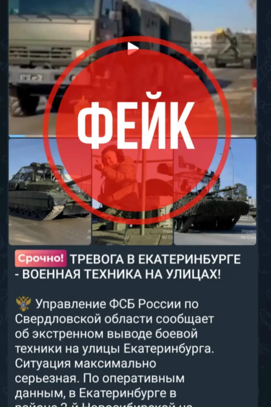 Злоумышленники создали телеграм-канал, замаскированный под новостное СМИ, для распространения ложных сведений, в том числе сообщений о ложной тревоге из-за якобы обнаружения диверсионной группы в Екатеринбурге.