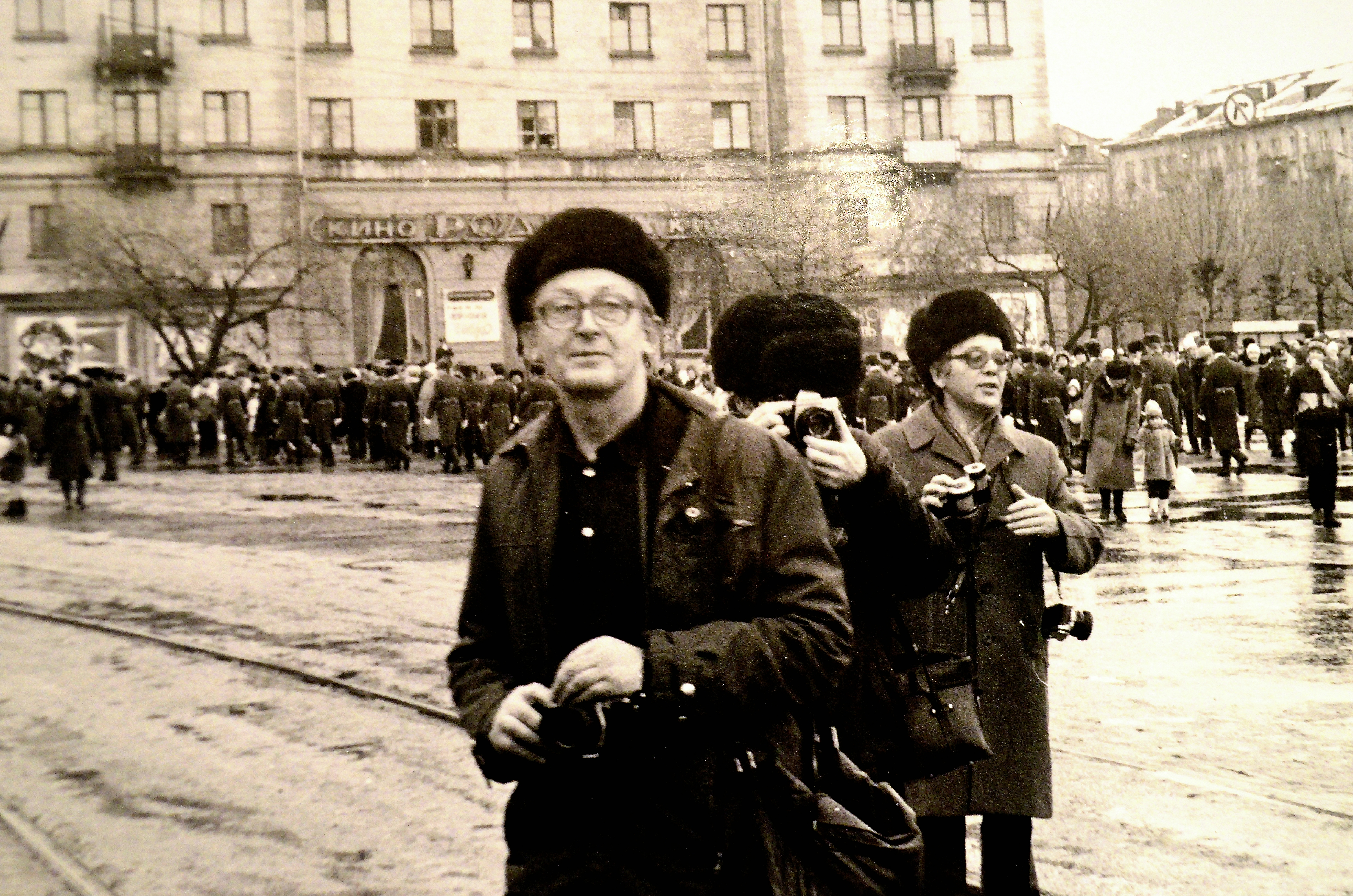- На фотографии Борис Рововых и Иван Коверда - два друга и два известных в городе фотографа, - пояснил он. - Снимок сделан ориентировочно в 1990-е годы, в ноябре, во время подготовки к праздничной демонстрации. Еще носит старое название кинотеатр «Родина», в доме нет пластиковых окон. И у фотографов не цифровые камеры, а довольно дорогие пленочные фотоаппараты, да еще и не по одному, для разных сюжетов. Кто автор снимка неизвестно. А момент городской жизни и ее фотолетописцев останется в памяти навсегда.